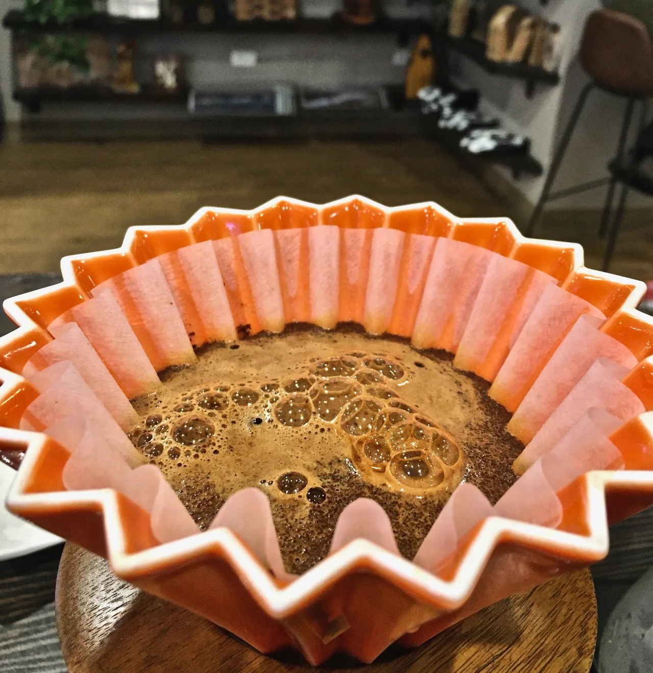 Hand-brewed coffee with clean, detailed flavors.